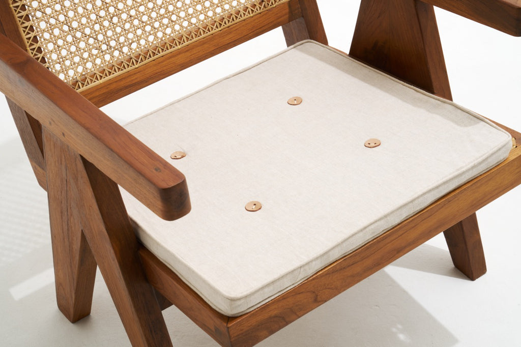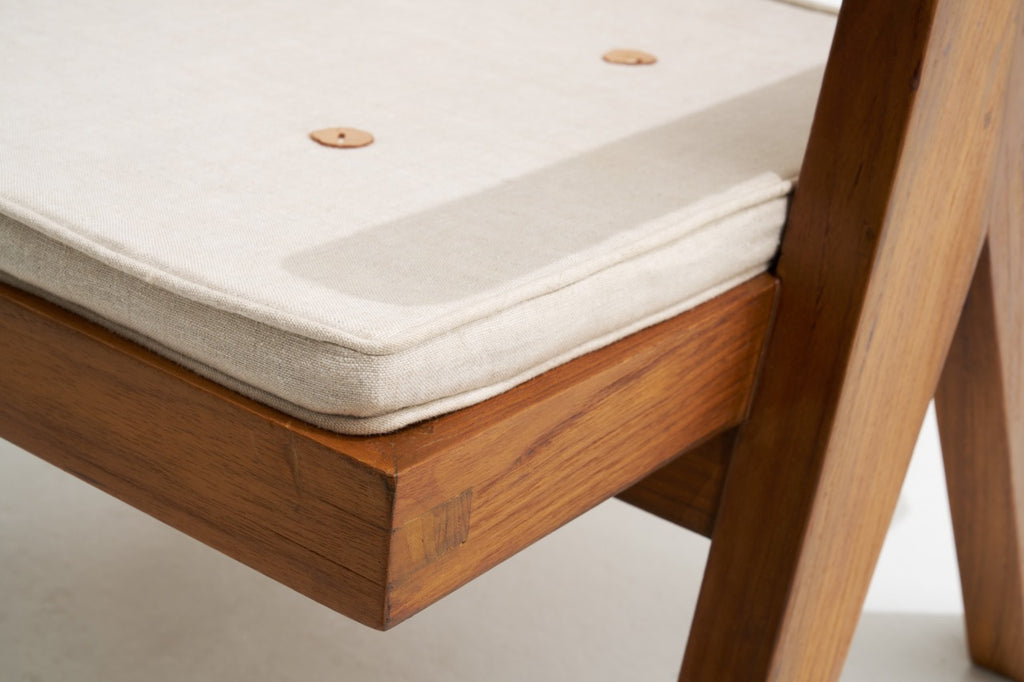 *The Jeanneret furniture we deliver is carefully handcrafted one by one based on original blueprints in a family-run workshop that inherited techniques from the craftsmen of the time when Jeanneret designed and supervised the work in the 1950s. This is an authentic reproduction produced by.