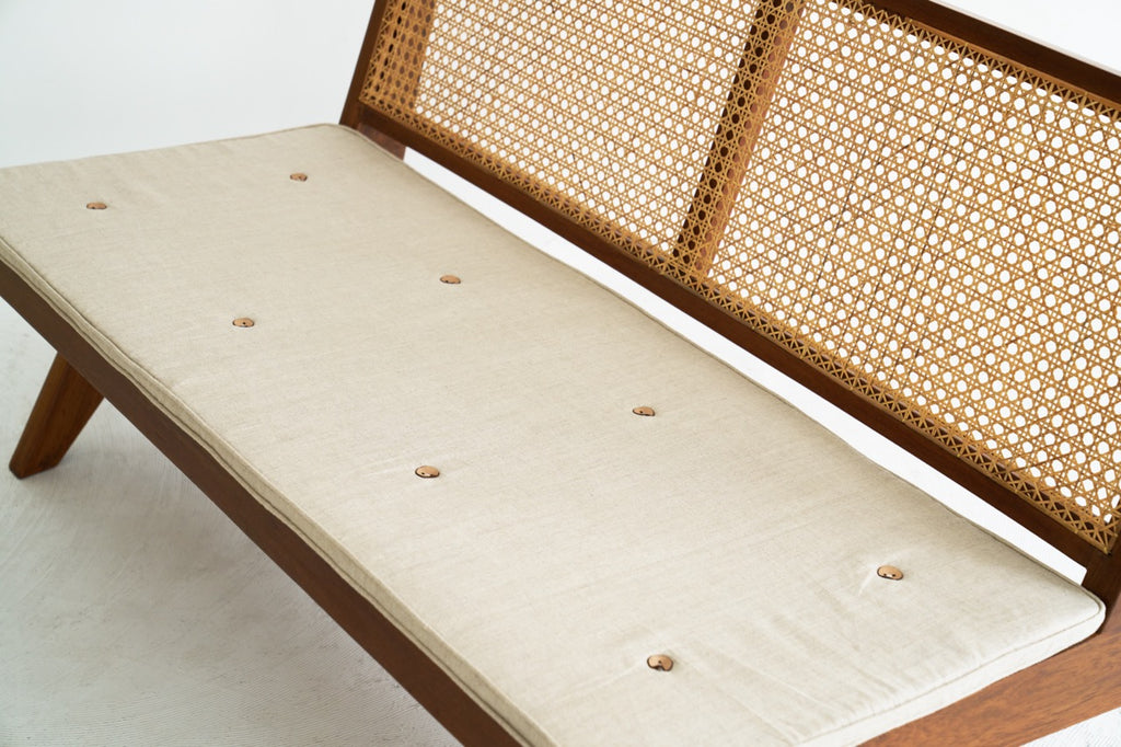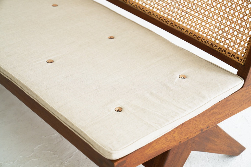 *The Jeanneret furniture we deliver is carefully handcrafted one by one based on original blueprints in a family-run workshop that inherited techniques from the craftsmen of the time when Jeanneret designed and supervised the work in the 1950s. This is an authentic reproduction produced by.
