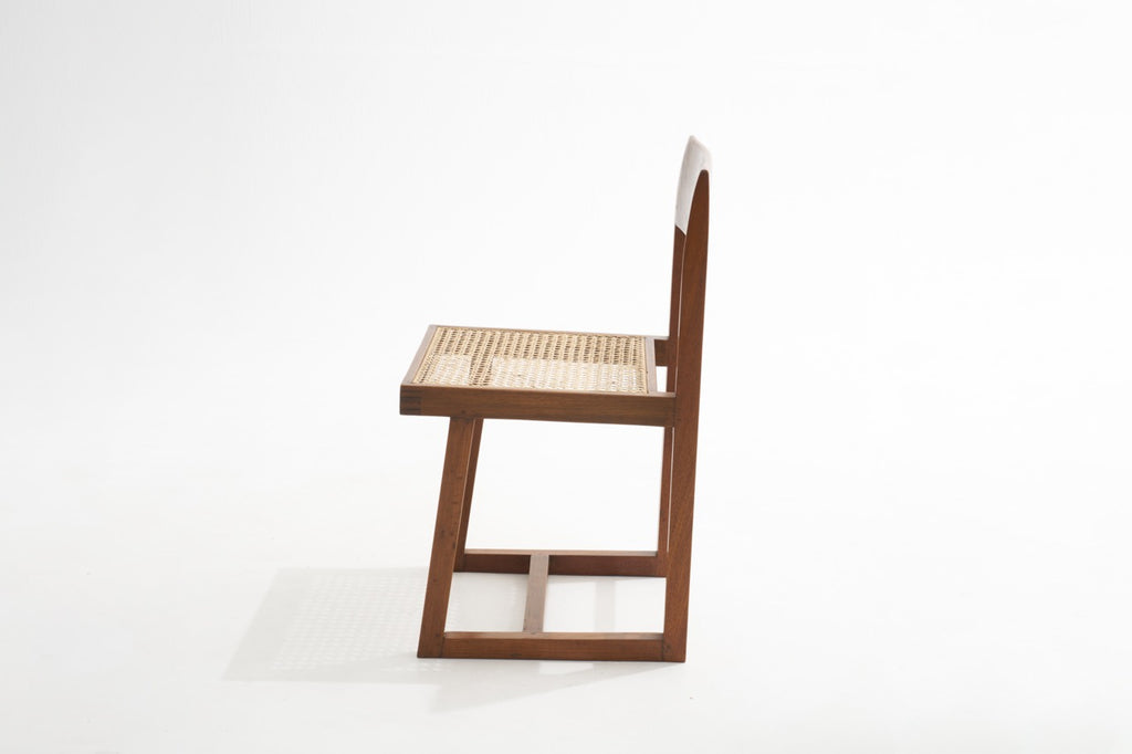 A chair used by many students at Chandigarh State Punjab University. The slightly curved "banner type" minimal backrest and vertical form give it a dignified appearance.