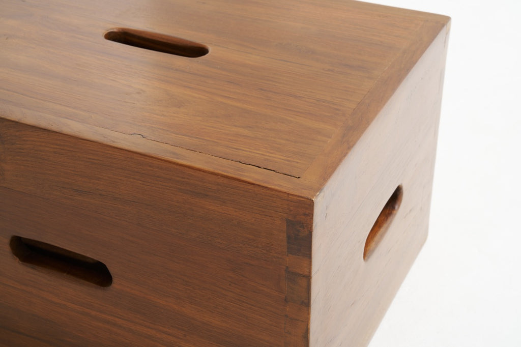 コルビュジエが晩年を過ごした南仏カップマルタンの小屋、パリにあるブラジル学生会館、そしてインドのチャンディーガルのためにデザインされたと言われるキューブスツール。この作品は正方形と長方形の2種類のサイズが当時から存在します。こちらは長方形のタイプ。スツールとして、サイドテーブルとして、時にはリアルに踏み台として、決してただの木の箱ではありません。コルビュジエの思想や哲学を吸収してください。